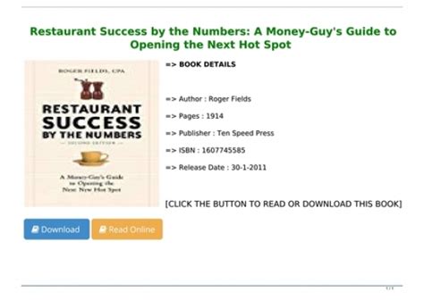 Download online Restaurant.Success.by.the.Numbers.A.Money.Guy.s.Guide.to.Opening.the.Next.Hot.Spot PDF Google eBookstore